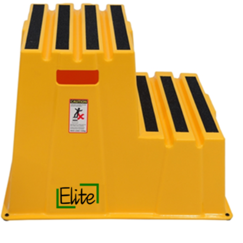Heavy-duty yellow 2-tier safety step — slip-resistant treads, high-visibility design, 500 lbs capacity, ideal for accessing elevated areas safely in commercial and industrial settings.
