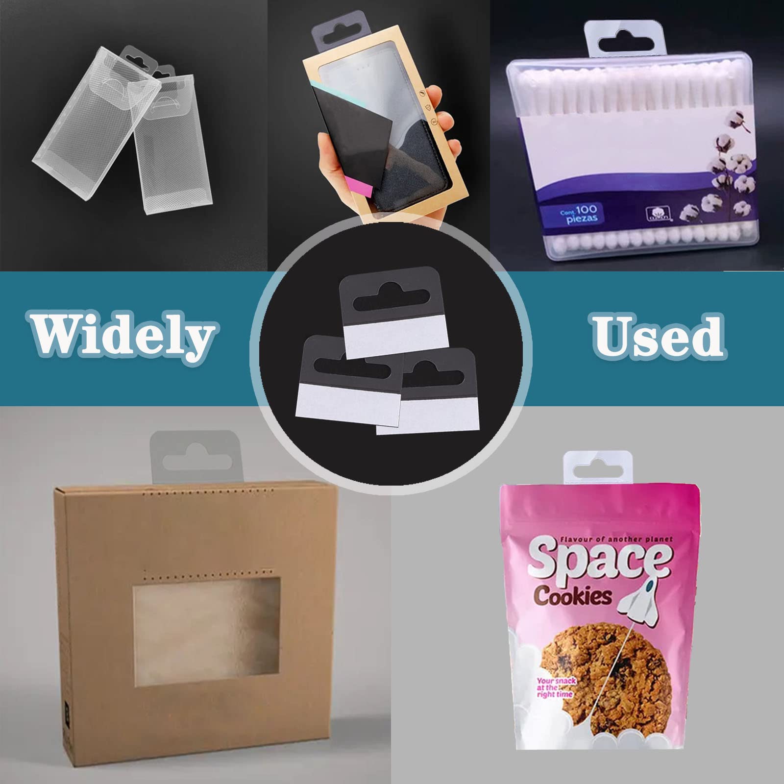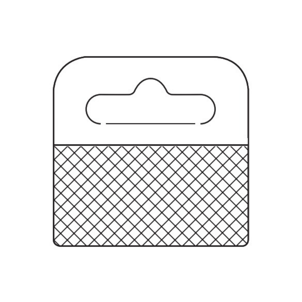 Clear, self-adhesive hang tabs — ideal for displaying small products on peg hooks, slatwalls, or Clip Strip Merchandisers.