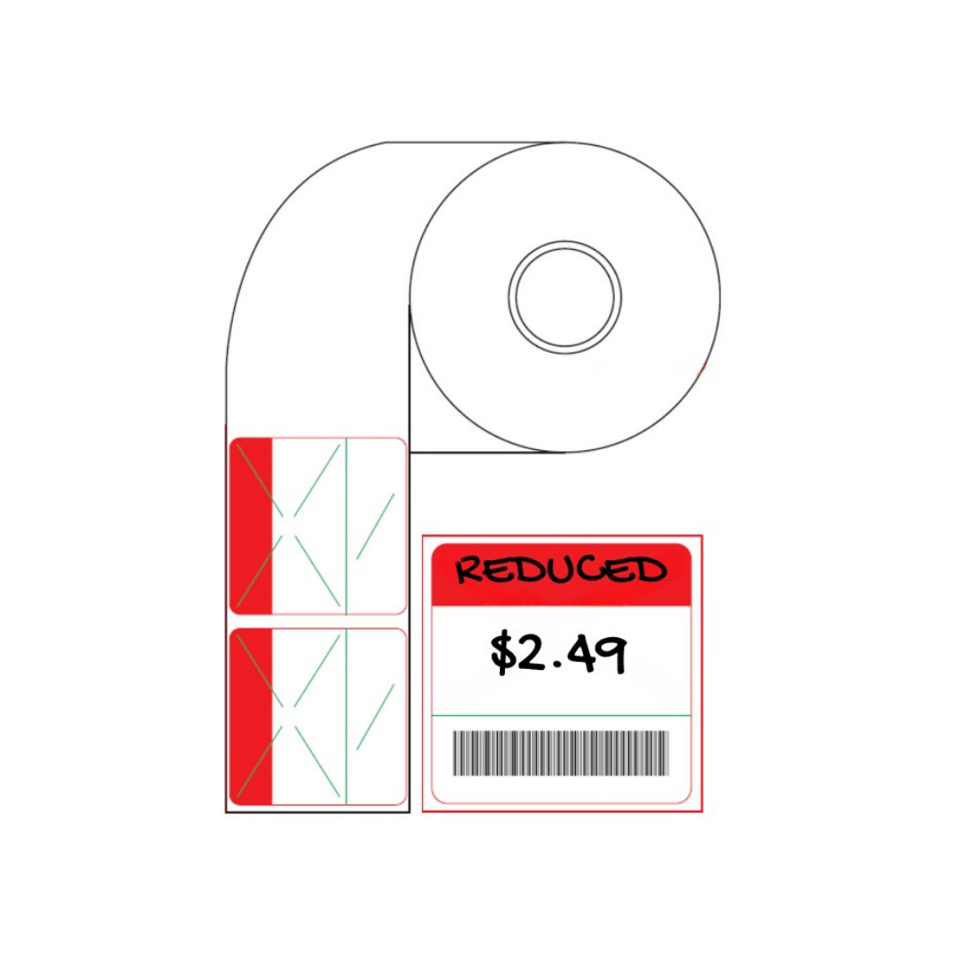 These “Reduced” peel-on labels are designed to highlight markdowns and clearance items with immediate impact. Crafted from durable, self-adhesive material, they bond securely to packaging, shelving, and wrap surfaces, and peel off cleanly when no longer needed. The striking design ensures that discounted goods stand out from standard stock, helping flush excess inventory fast and maintain store flow. Ideal for supermarkets, convenience stores, and department store clearance zones, these labels deliver practicality, visibility and flexibility for changing promotions.